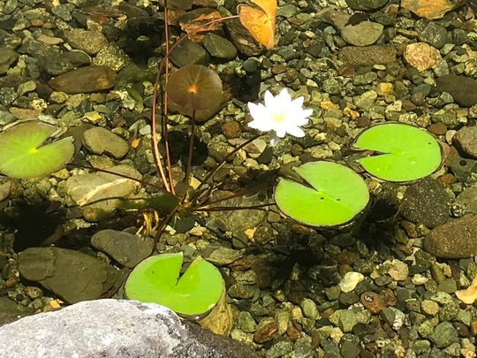 植物も日毎に成長し、花も次々と咲く様は、まるでわが子の成長を見ているかのようです。水辺には水生植物が浮かび、底にはマリモがひっそりと、金魚やメダカたちが湧き水と戯れ、毎朝毎晩見るのが楽しみになりました。